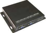 VGA光端机有单模和多模两个系列产品。VGA光端机由发射机和接收机两部分组成,使用4根光纤传输1路VGA信号,最大传输距离单摸20km,多模0.55km。主要用于大型显示系统中计算机图像的长距离传输。发射机输入为1路VGA信号,1路监视输出,可用于连接本地监视器。输出为4路LC光纤接口,分别为R、G、B、CK(R G B为红绿蓝三基色,CK为时钟信号)。接收机的输入为4路LC光纤接口,分别为R、G、B、CK。有1路VGA输出输出,1路DVI输出,两路可同时输出。在进行系统连接时,必须将收发两端的光纤接口R、G、B、CK对应连接,不可交叉连接,否则将无法传输信号。